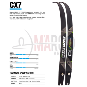 I flettenti Wiawis CX7 sono realizzati combinando carbonio ad alto modulo con un core in foam che conferisce velocità alla freccia, ottima stabilità in chiusura ed un miglior assorbimento di vibrazioni.