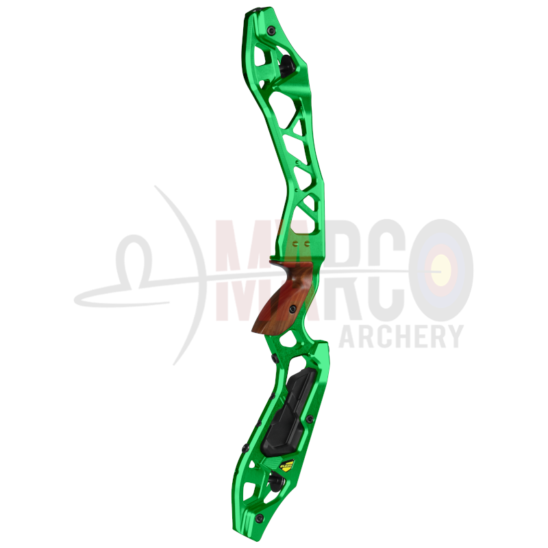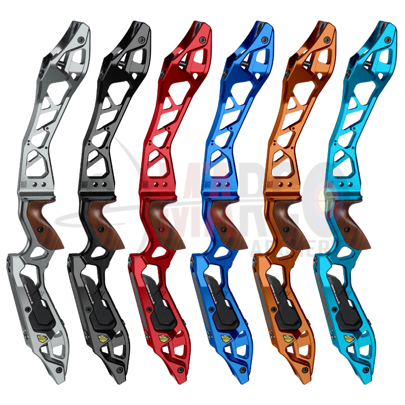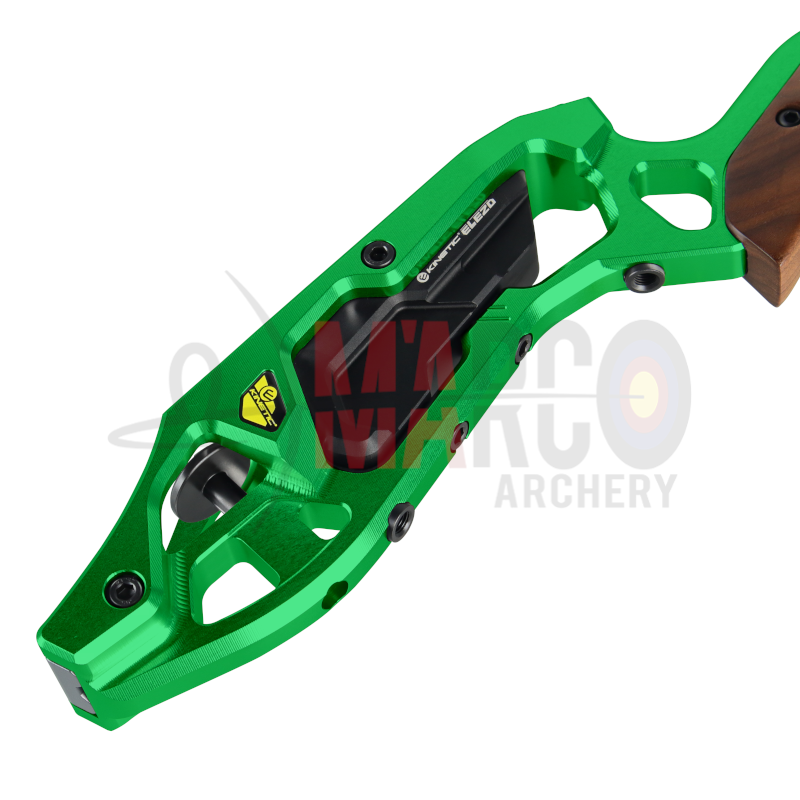 Il Kinetic Elezo è un riser pensato principalmente per l'arco nudo grazie al peso rimovibile in dotazione . Il riser è lavorato a CNC da una barra di alluminio 6061-T651.