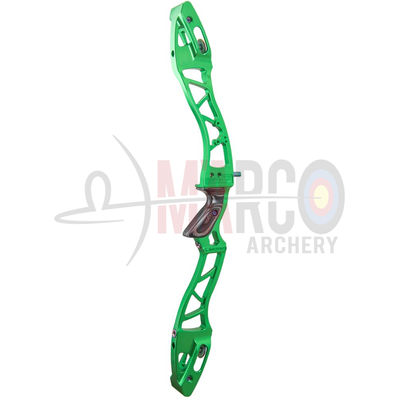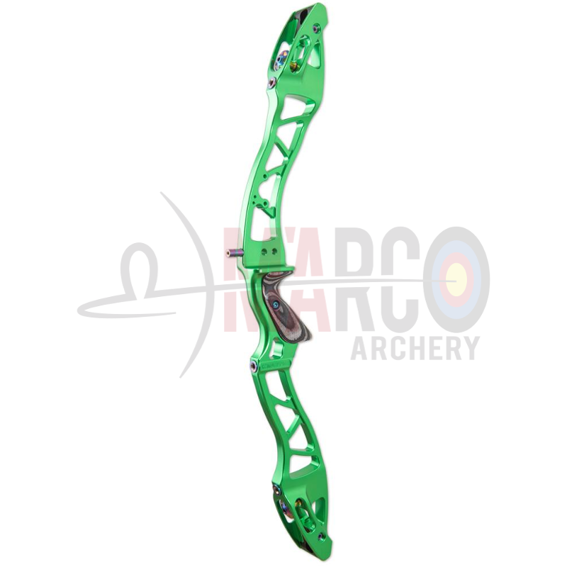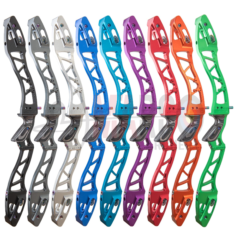 Riser con attacco ILF realizzato a CNC da una barra di alluminio 6061. Il riser è dotato di un sistema di allineamento flettenti facile da regolare, di grip in legno ed è anodizzato in tantissimi colori brillanti. Peso 1280g.