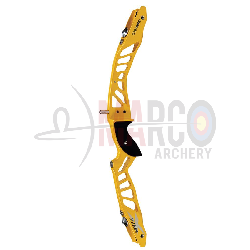 Il winex è uno dei riser più longevi di Win&Win anche se nel corso degli anni ha subito modifiche al design. Il riser, ora disponibile anche nella misura 23", è come sempre realizzato in alluminio ma ha comunque un peso contenuto, ed è dotato di tutto quello che ci si aspetta da un riser, come la regolazione della precarica del 10% e regolazione dall'allineamento dei flettenti.