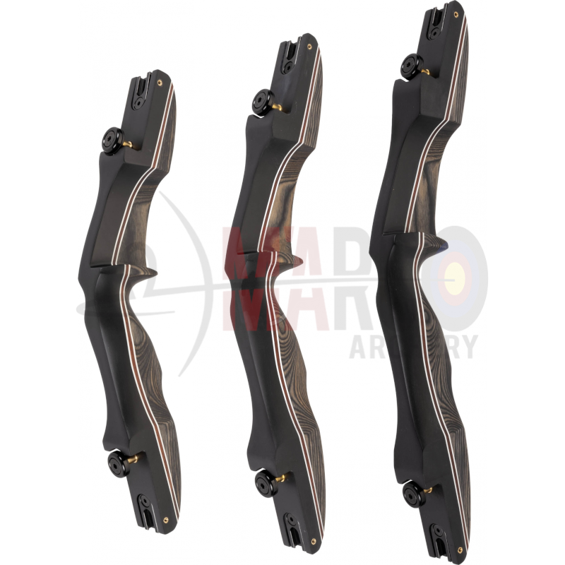 - Con riser da 17" e flettente short si ottiene un'arco da 58", con medio 60" e con long 62" di lunghezza arco.