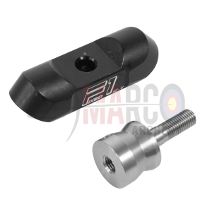 V-Bar con posizione e angoli fissi. Completo di boccola in acciaio per il fissaggio all'arco o alla prolunga. Fori filettati da 5/16"-24 . Fresato e anodizzato.