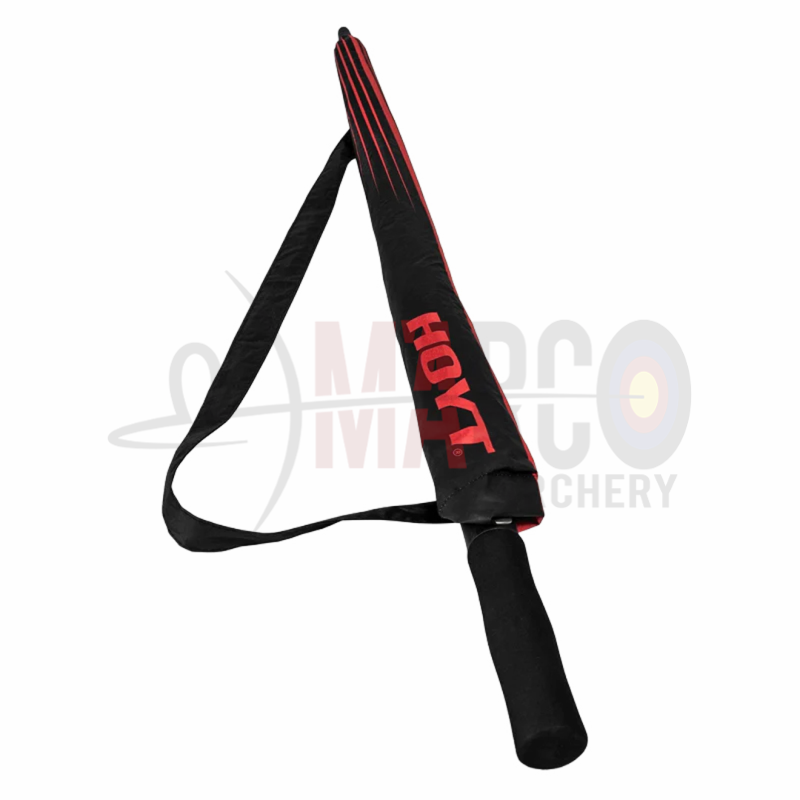 L'ombrello Hoyt da 60" offre ampia copertura e protezione dalle intemperie, adatto sia per l'uso sul campo di tiro che come riparo quotidiano. Presenta il logo Hoyt ed è rifinito in nero.
