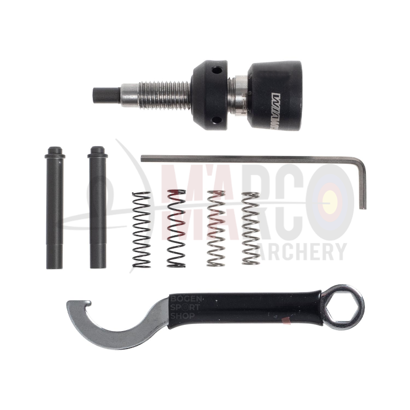 Bottone ammortizzatore in con corpo in alluminio anodizzato, stelo filettato in acciaio inossidabile. Movimento fluido e preciso, pesa solamente 43g. Range di regolazione: Min. 24mm - Max 29mm